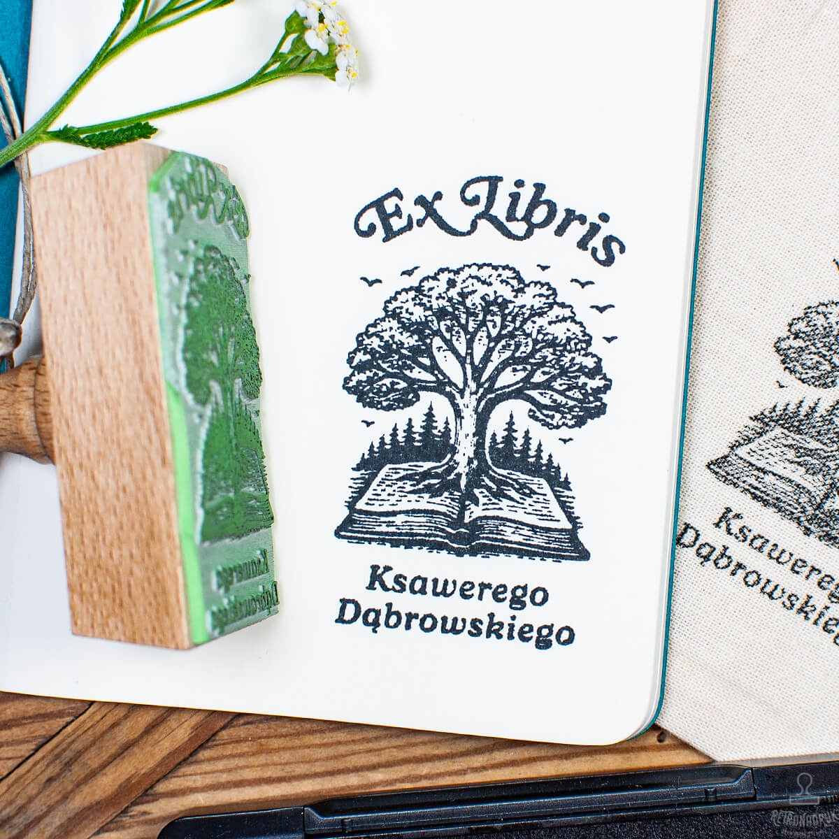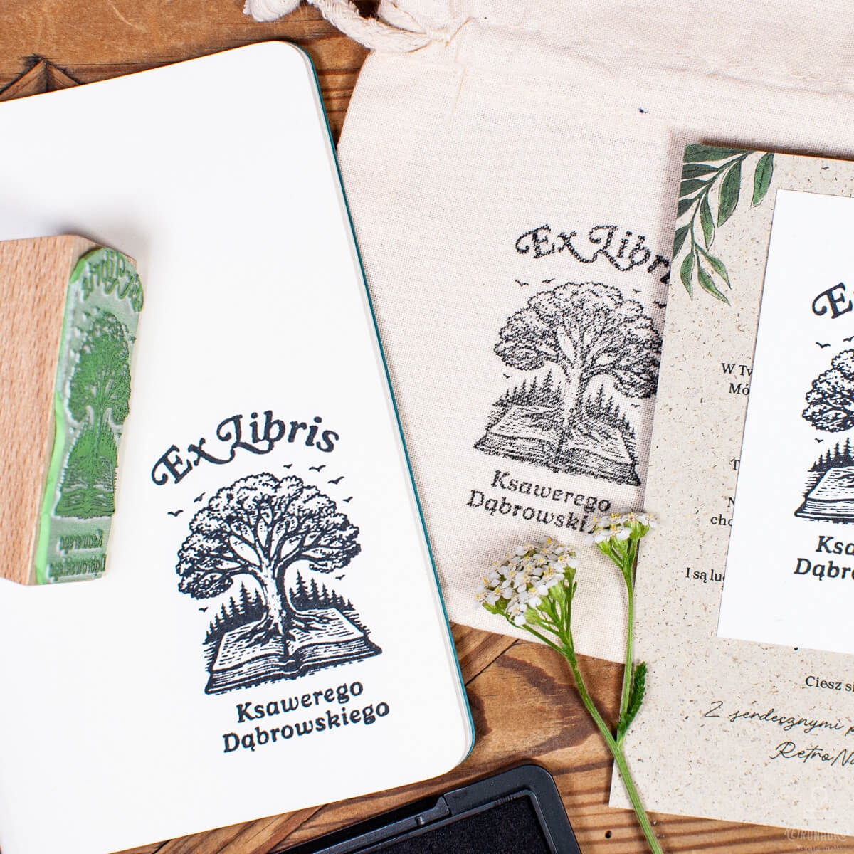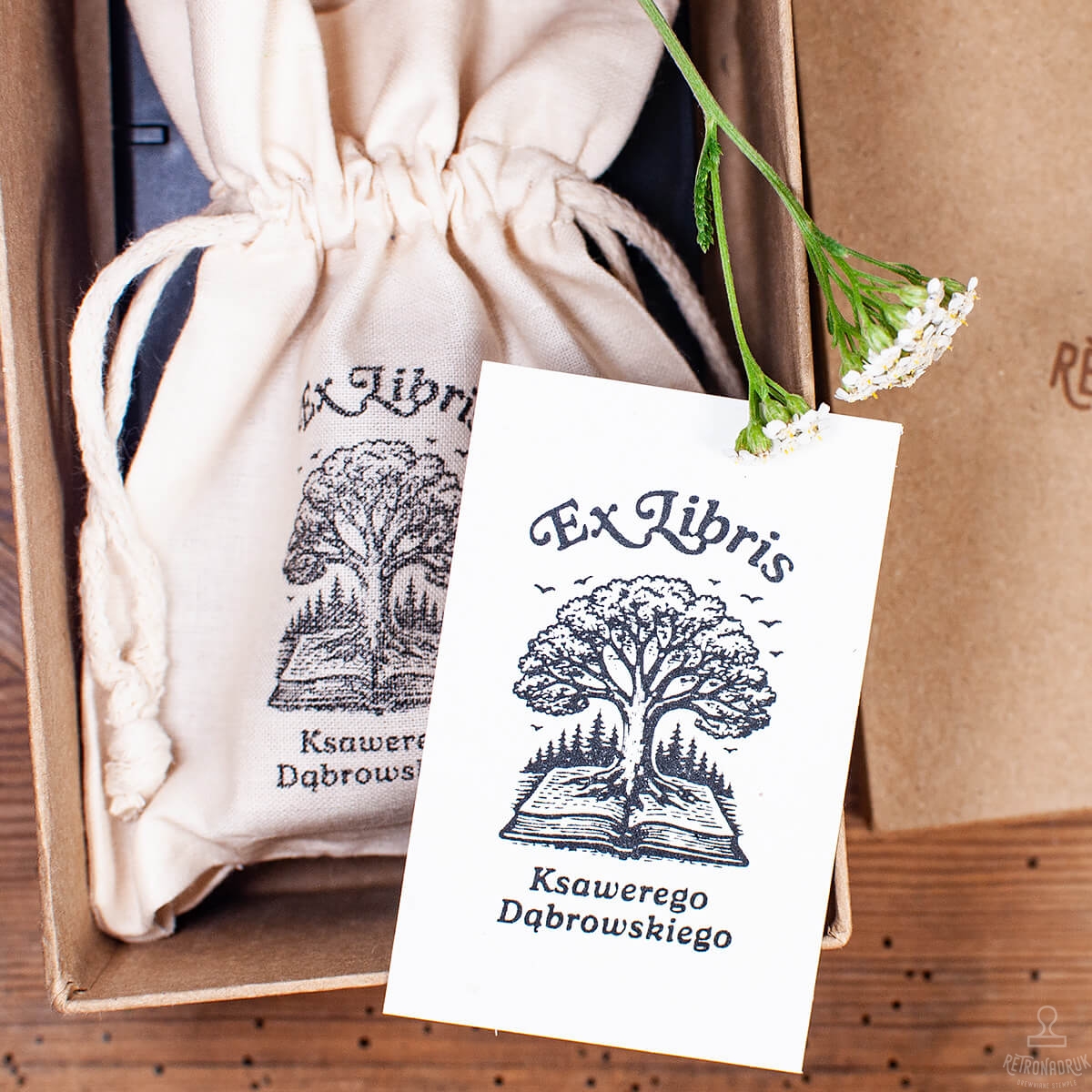Ex Libris Drzewo Wiedzy – personalizowany stempel w oldschoolowym zestawie prezentowym dla miłośników książek.