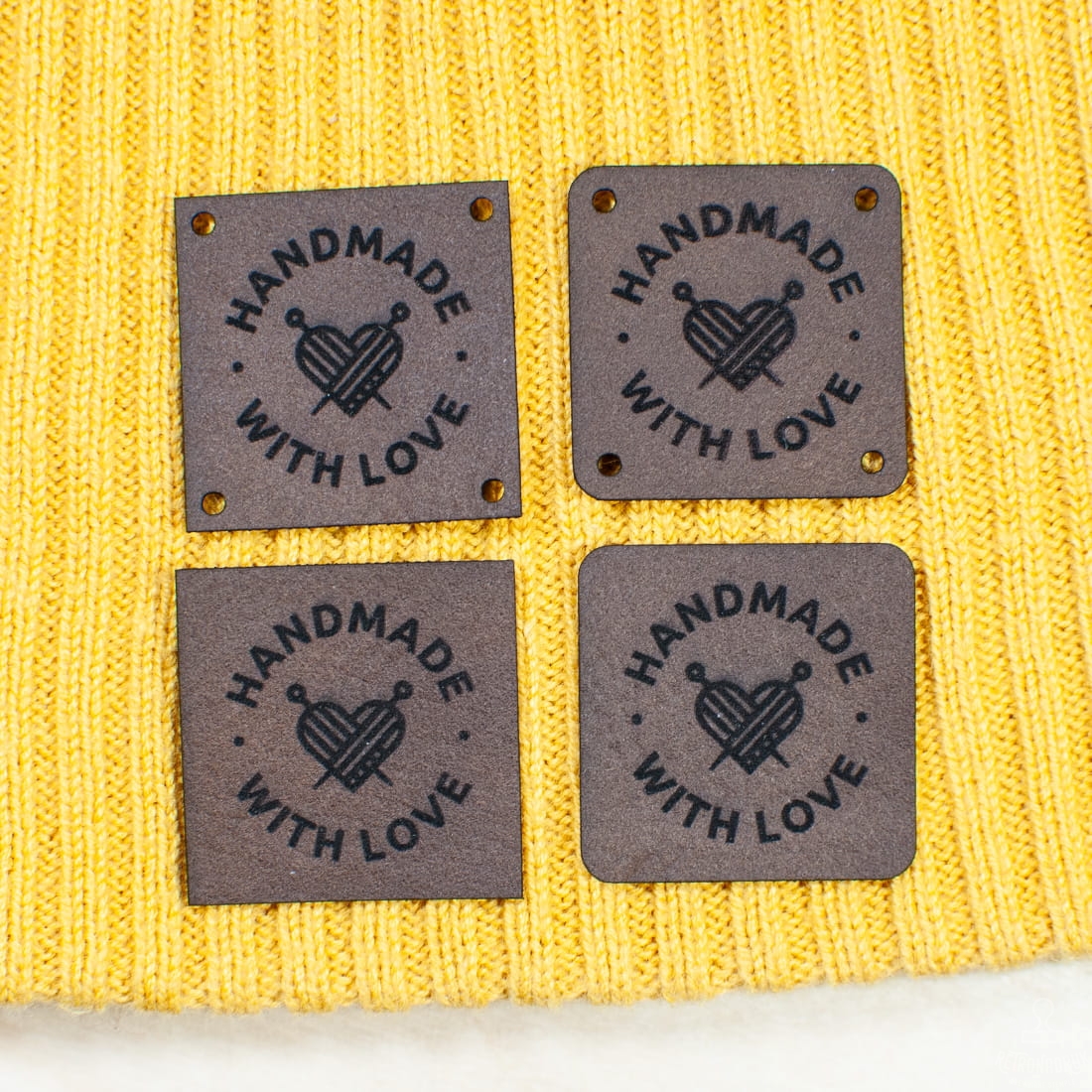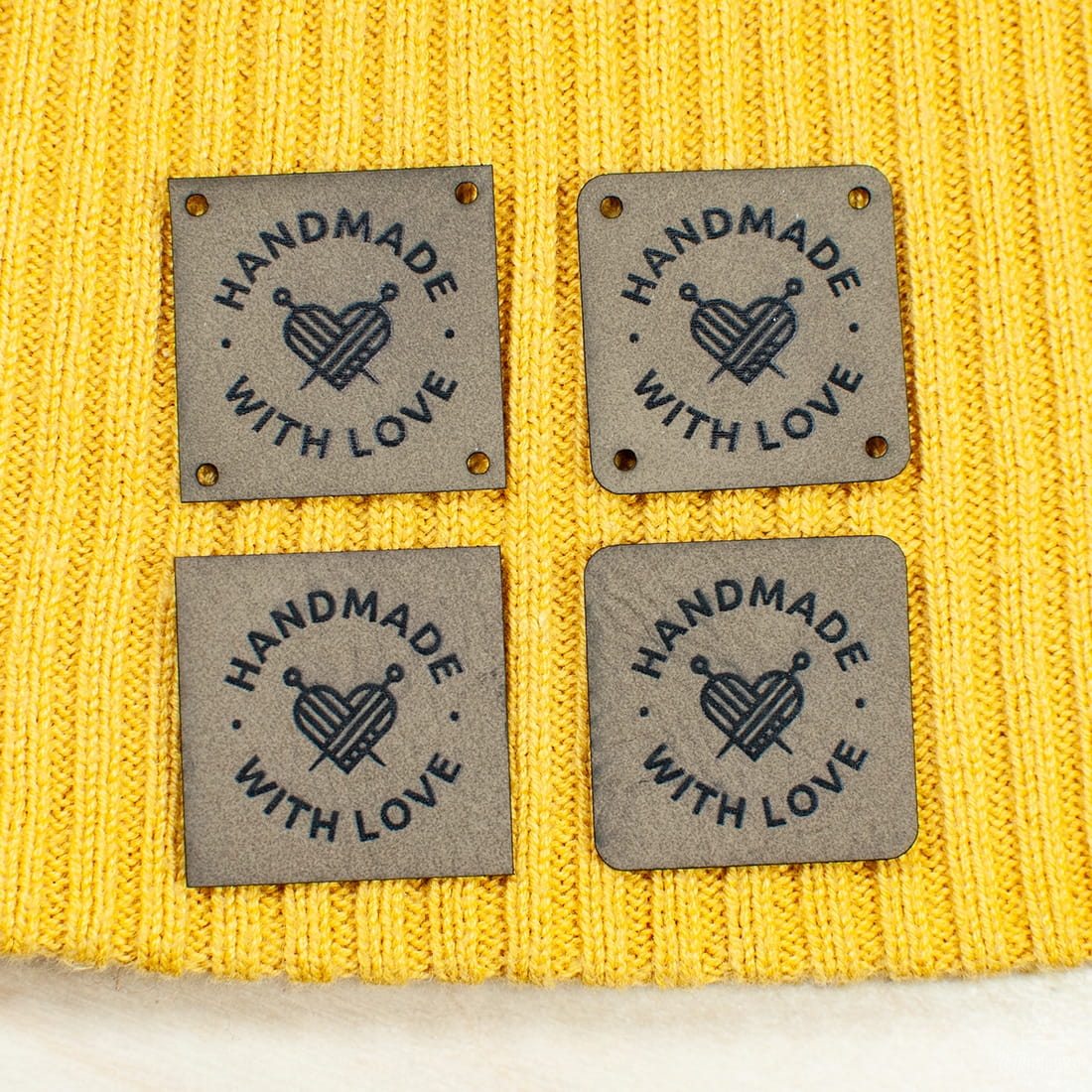 Kwadratowe metki z ekoskóry 25x25 mm z trwałym grawerem to estetyczne oznaczenie odzieży, akcesoriów i rękodzieła