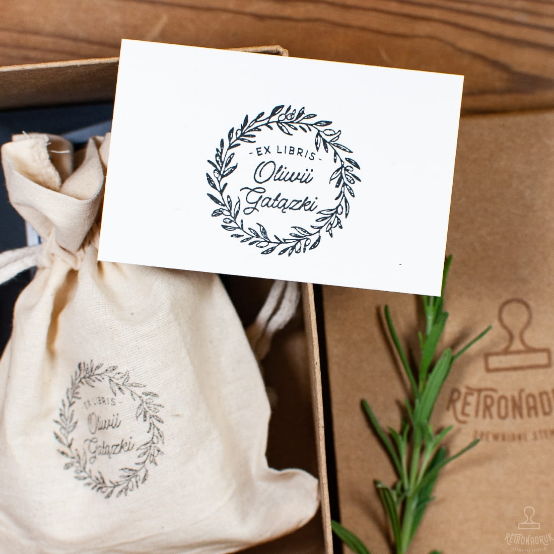 Personalizowany ekslibris w zestawie na prezent - ozdobny wianek