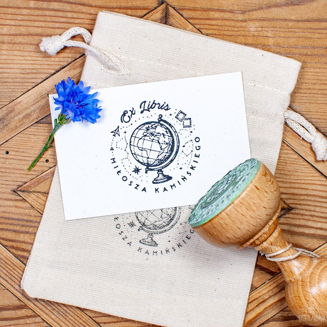 Drewniana pieczątka Ex Libris – Globus