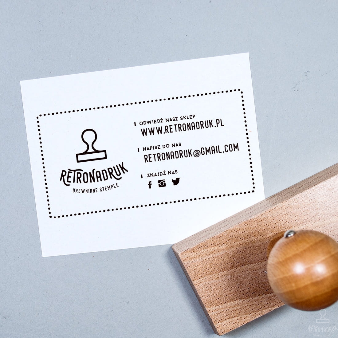 Duża pieczątka z logo w rozmiarze 10x5cm.