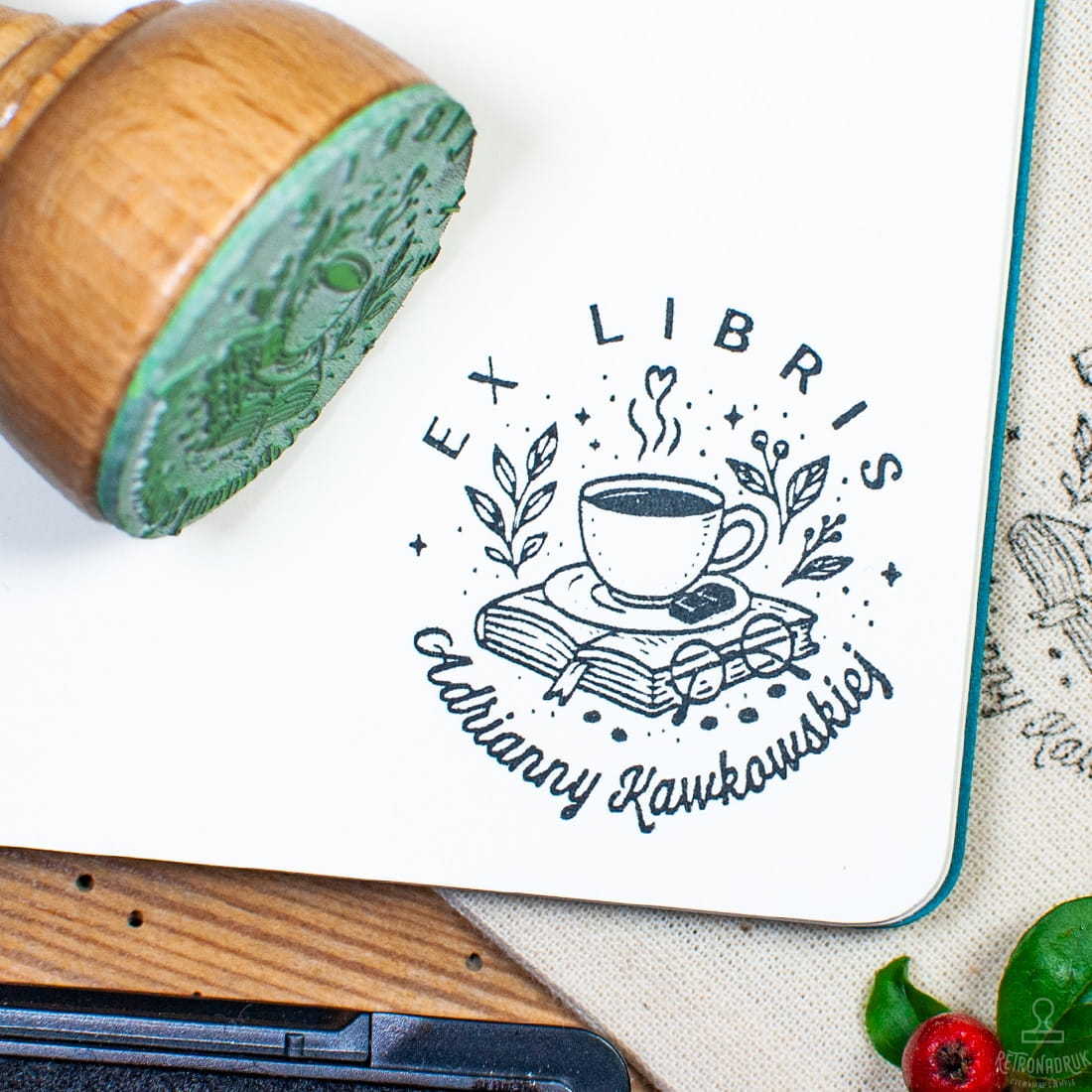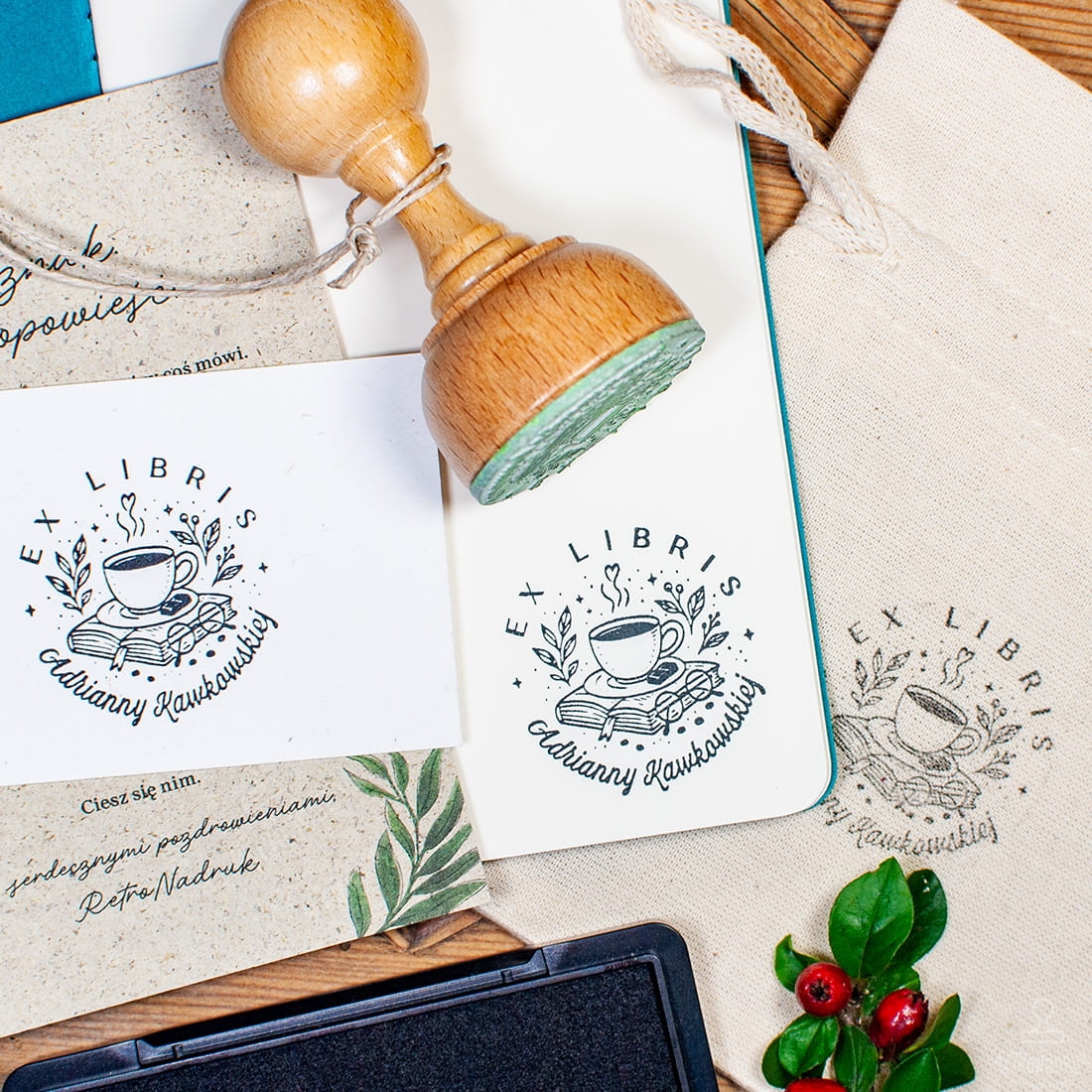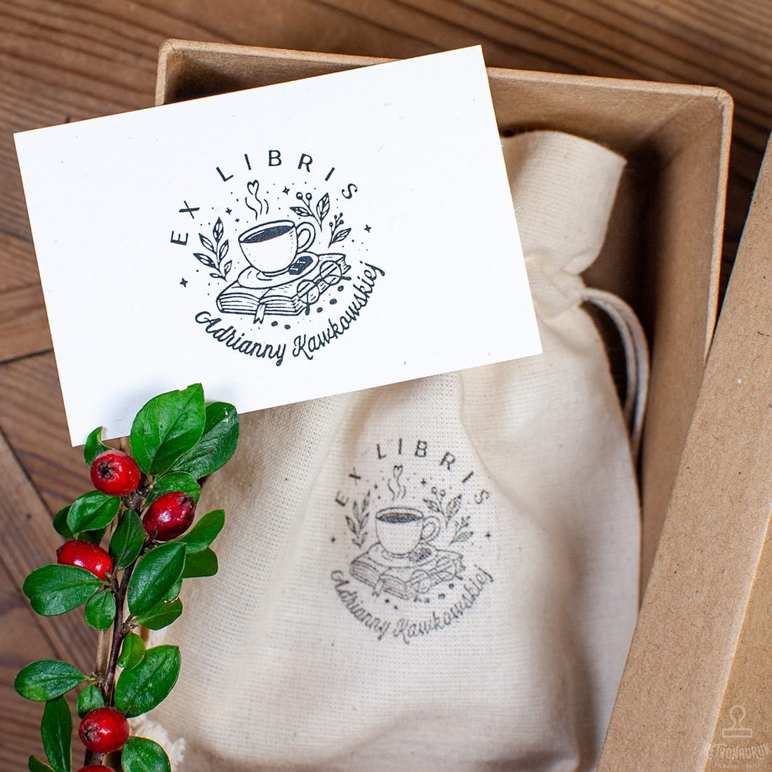 - personalizowany stempel ex libris (średnica 40 lub 50 mm),