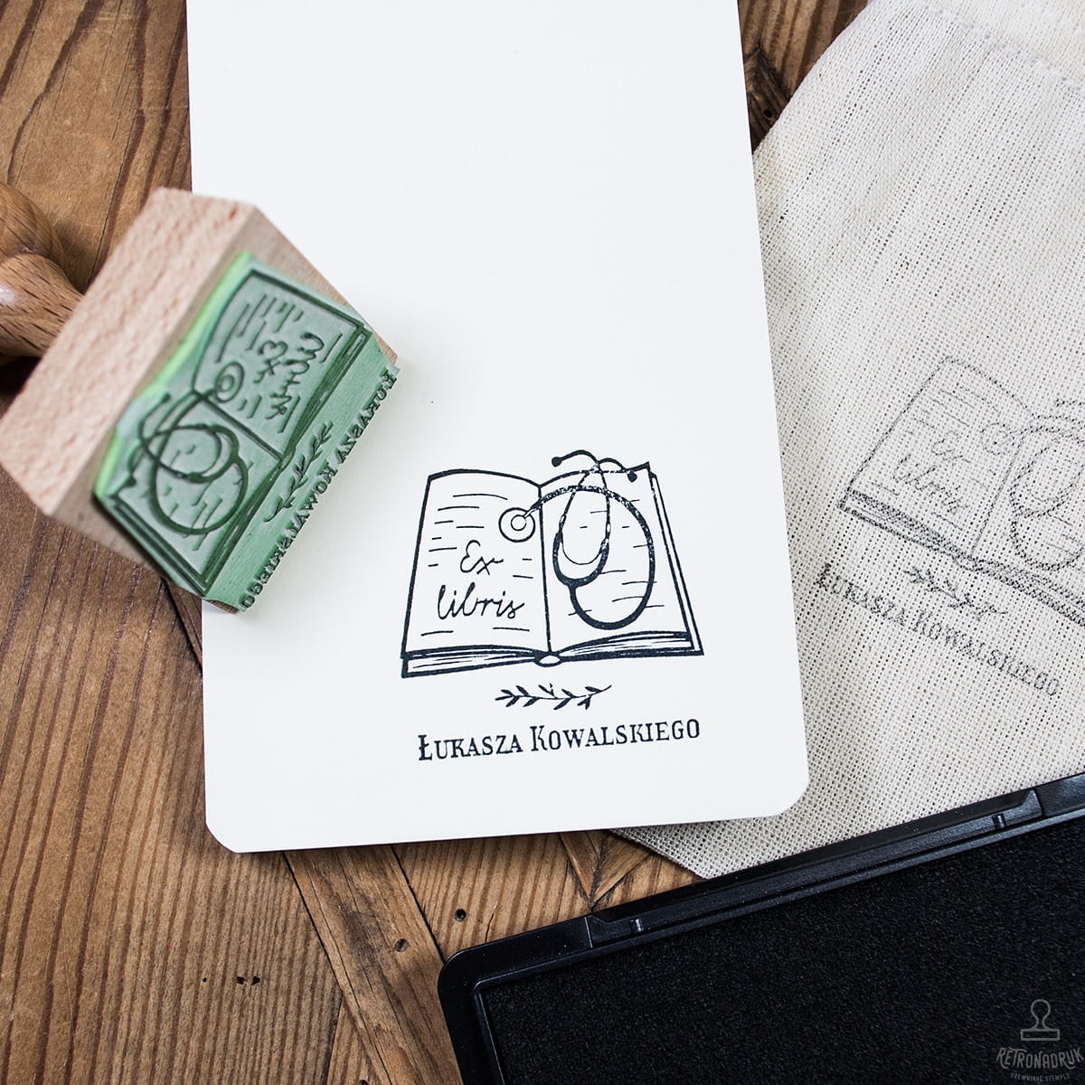 Stempel ex libris do książek z motywem stetoskopu w zestawie na prezent dla medyka