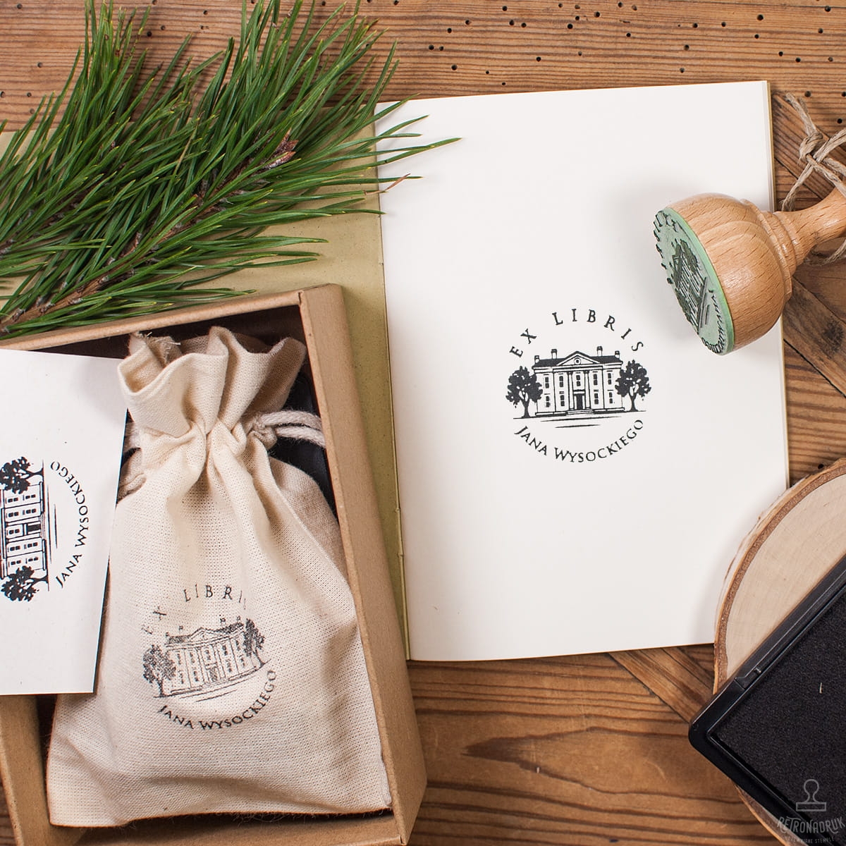 Upominkowy zestaw ekslibrisowy zawiera personalizowaną pieczątkę Ex Libris ze wzorem dworku szlacheckiego, co czyni go idealnym dla tych, którzy są zafascynowani historią i tradycją szlachecką. Prezentowy Ex Libris to doskonały pomysł na spersonalizowany prezent dla miłośników czytania, którzy cenią elegancję i urok minionych epok. Zestaw obejmuje: