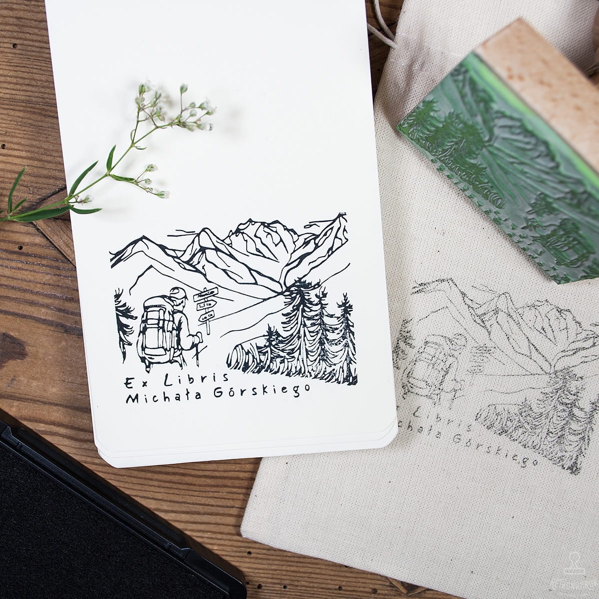 Ex Libris Zestaw Prezentowy dla Miłośników Górskich Wędrówek - Personalizowany Stempel z Motywem Gór