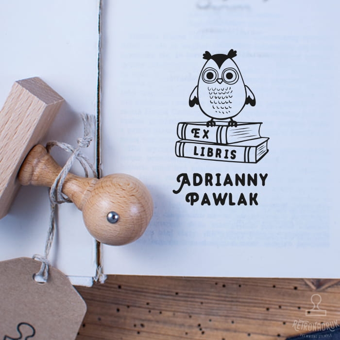 Pieczątka ex libris z motywem sowy to wyjątkowy sposób na oznaczanie książek z domowej biblioteczki. Drewniana pieczątka, spersonalizowana imieniem i nazwiskiem właściciela, dodaje Twoim książkom elegancji i mądrości, symbolizowanej przez sowę – uosobienie wiedzy i rozwagi. Ex libris w formie prostokątnej pieczątki retro jest doskonałym pomysłem na personalizowany prezent dla miłośnika literatury, który ceni sobie zarówno tradycję, jak i wyjątkowe detale.