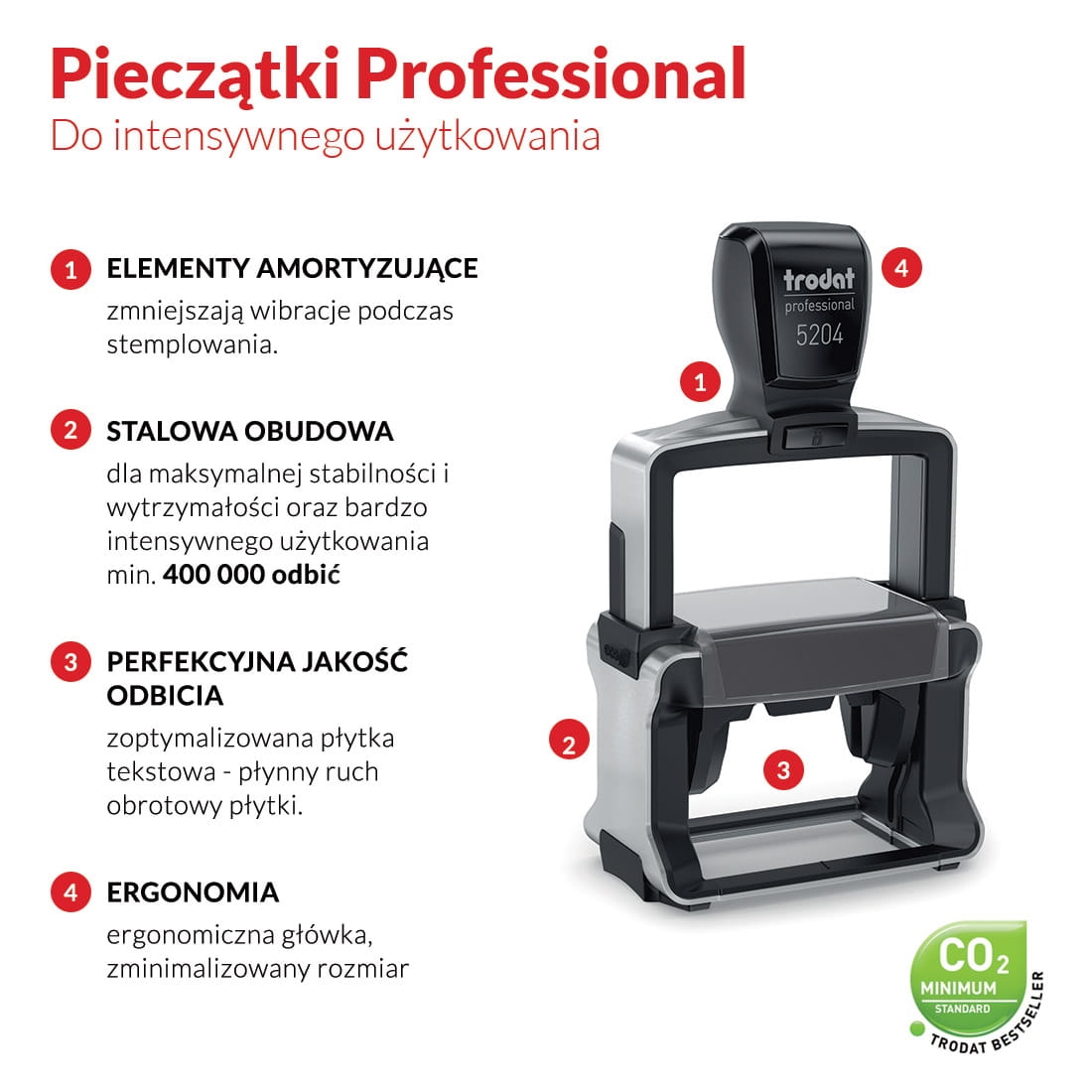 Pieczątka Trodat Professional to idealny wybór dla firm poszukujących nie tylko niezawodnego narzędzia do codziennej pracy, ale także dla tych, które cenią sobie ekologiczne i zrównoważone podejście do biznesu. Wybierz produkt, który łączy w sobie wydajność, trwałość i świadomość ekologiczną.
