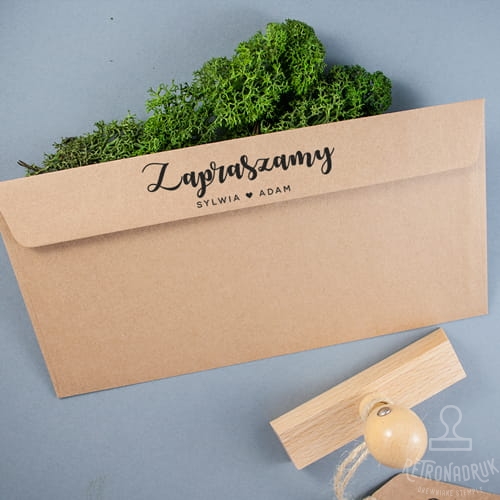 Pieczątka ślubna z napisem "Zapraszamy" do stemplowania kopert z zaproszeniami.