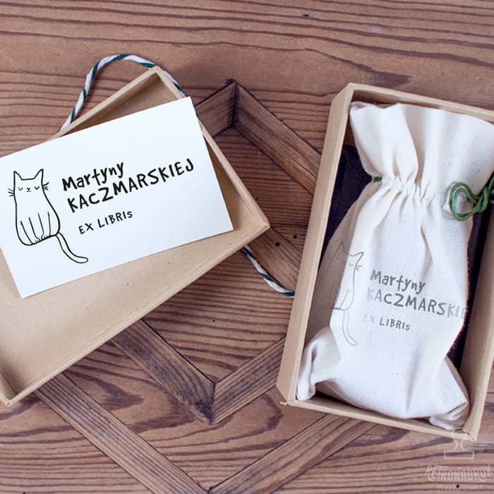 Stempel Ex Libris z krągłym kotem do książek - zestaw prezentowy