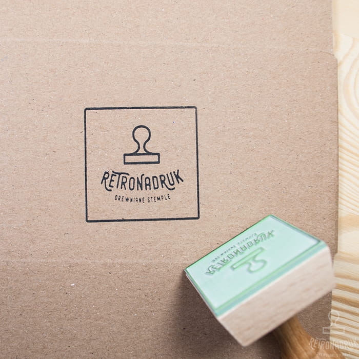 Stempel kwadratowy z logo do wykonania z własnym projektem graficznym lub tekstowym. Stemple firmowe retro to unikalny sposób promocji firmy, oferowanych produktów i usług. Pieczątki z logo mogą służyć do tworzenia wizytówek, znakowania papieru firmowego, kopert, etykiet czy opakowań produktu.