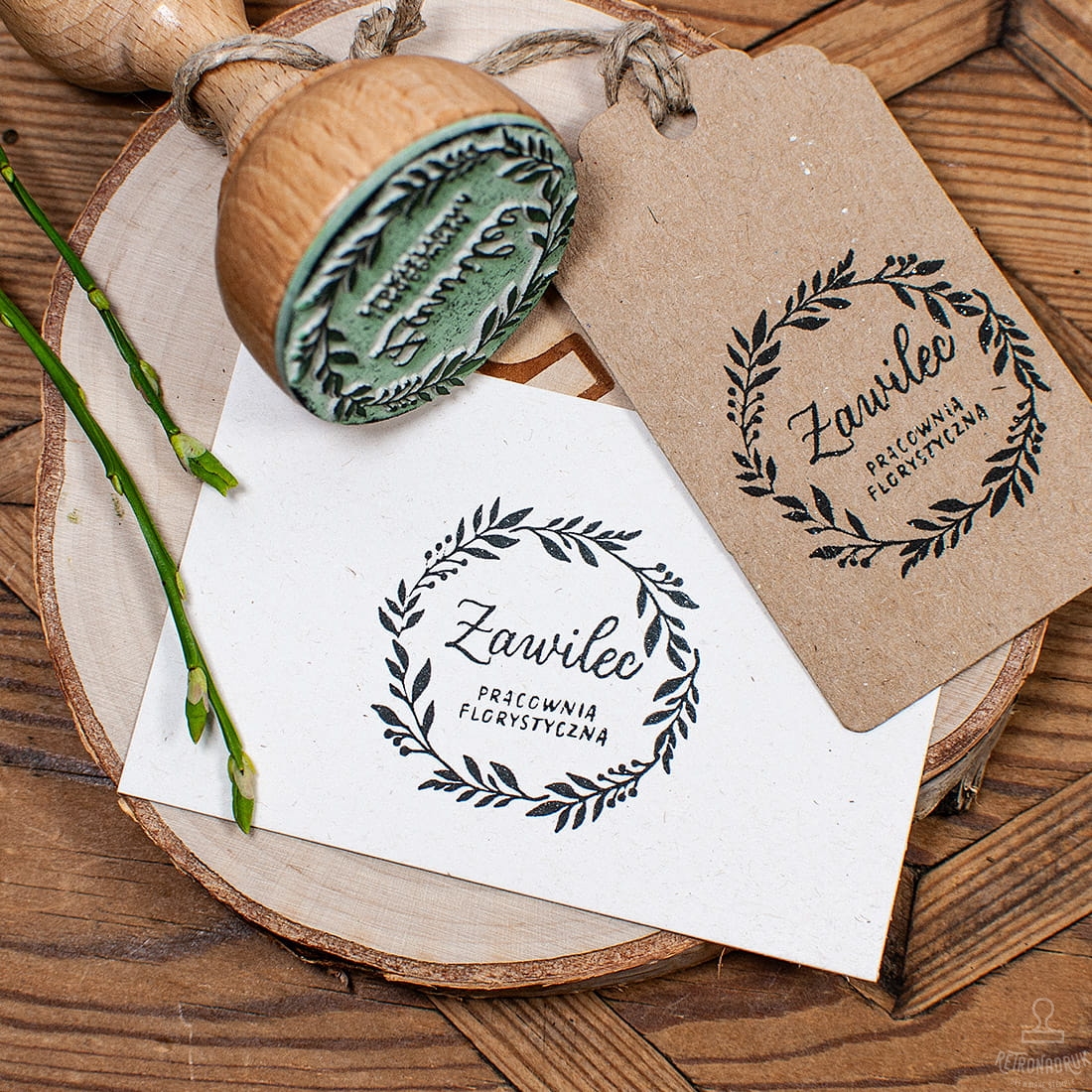 Stempel Okrągły z Motywem Wianka - Personalizowany nazwą Pracowni, Firmy lub Marki