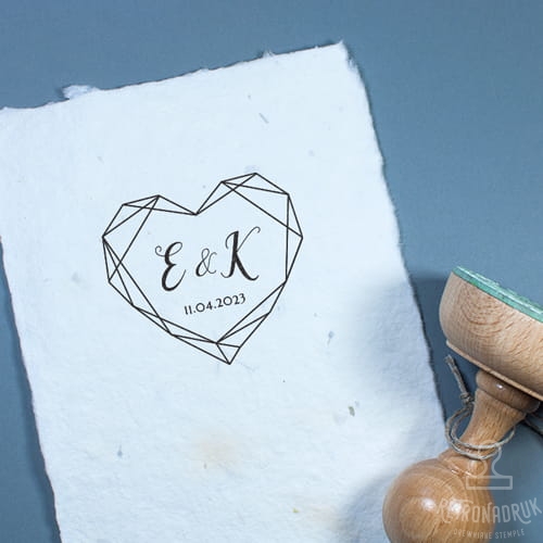 Stempel ślubny geometryczne serce z inicjałami