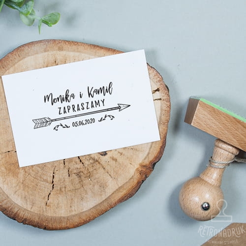 Stempel ślubny prostokątny, spersonalizowany imionami Narzeczonych i datą ślubu.