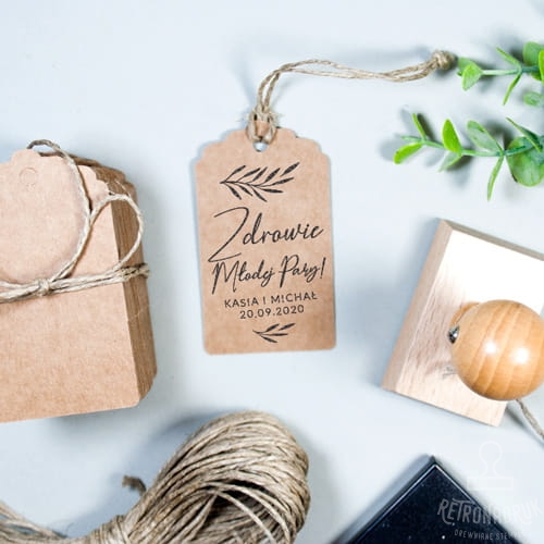 - stempel 60x40 mm "Zdrowie młodej pary!" do personalizacji imionami Pary Młodej i datą ślubu,