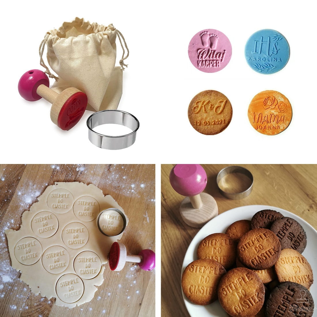 Stempel do ciastek z wybranym wzorem wielkanocnym. Stempel z drewnianą rączką wykonaną z drewna bukowego oraz przymocowaną do niej płytką stemplującą ze wzorem odbicia, wykonaną z materiału posiadającego atest do kontaktu z żywnością(posiada certyfikaty FDA, BfR oraz PZH), co zapewnia bezpieczeństwo i jakość. Stempel może służyć m.in. do tworzenia wyjątkowych wielkanocnych ciasteczek.