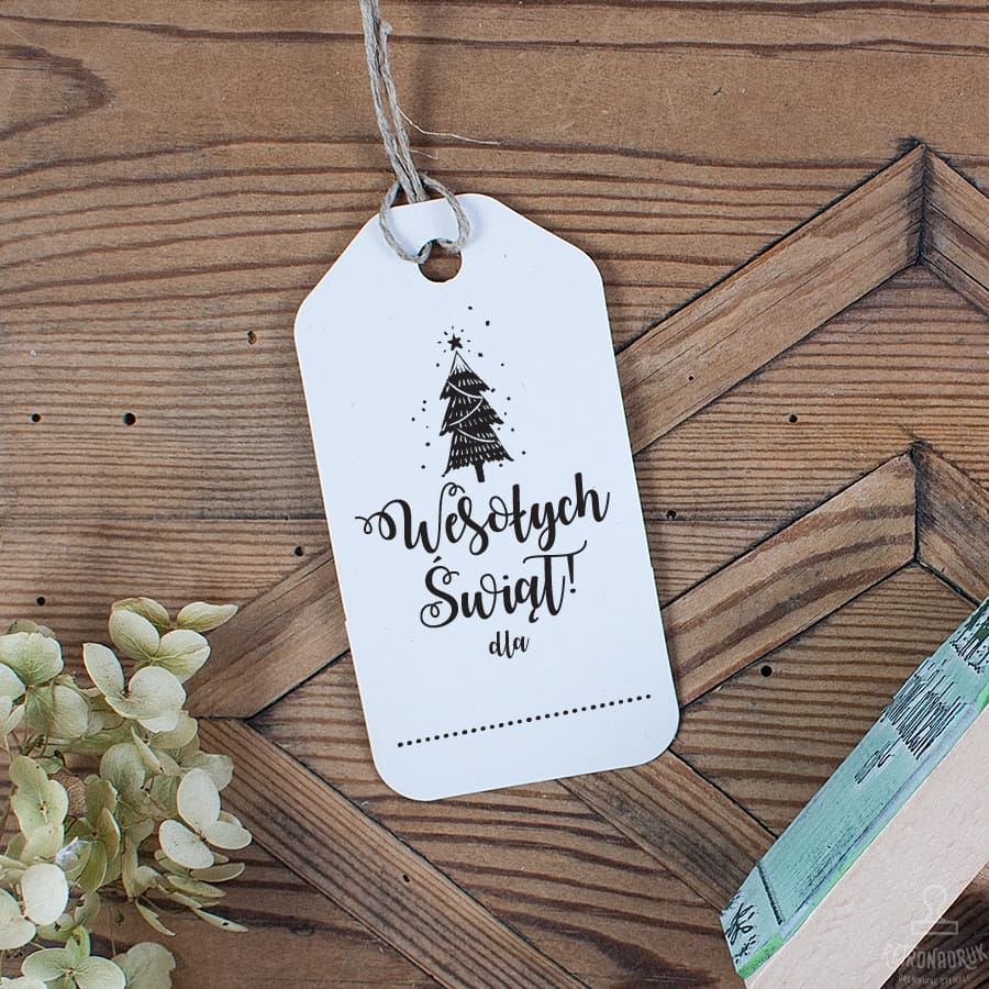 Świąteczna pieczątka na etykiety papierowe z motywem choinki BożoNarodzeniowej. Pieczątka świąteczna może służyć do stemplowania etykiet do prezentów od Świętego Mikołaja dedykowanych zarówno dla rodziny i przyjaciół jaki i współpracowników.
