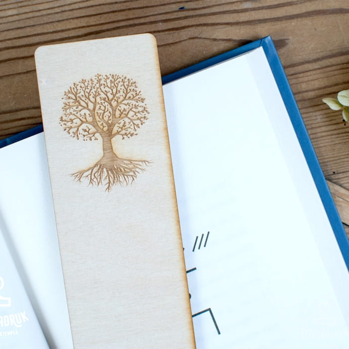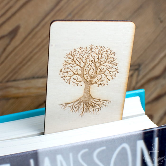Drewniana zakładka do książki z motywem drzewa życia - symbol wiedzy i równowagi.