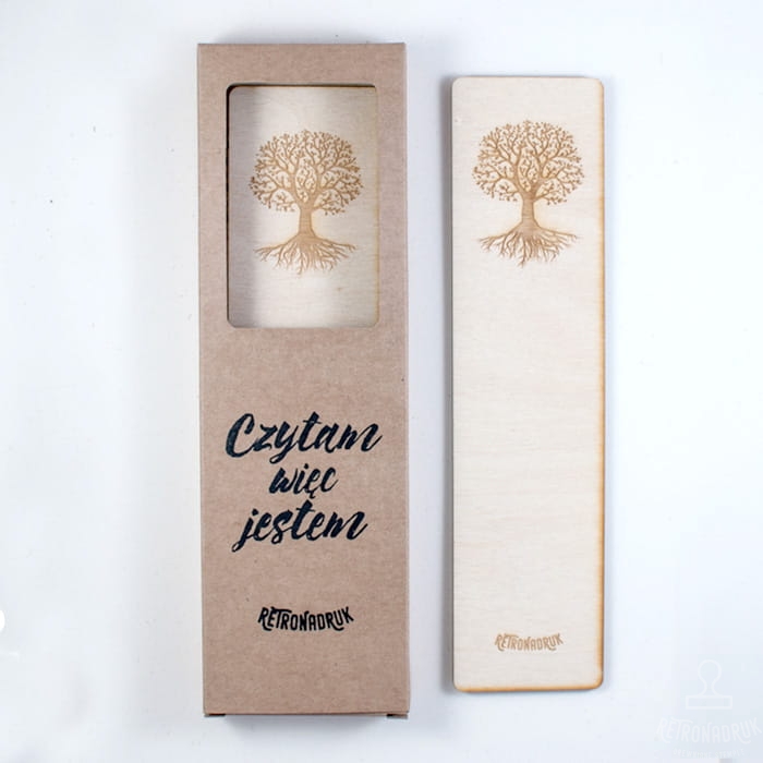 Wykonana ze sklejki, jednostronna, z delikatnym grawerem i wykończona w stylu retro. Każda zakładka pakowana jest w ekologiczne pudełko prezentowe z okienkiem – gotowa do wręczenia bliskiej osobie lub jako drobiazg dla siebie.