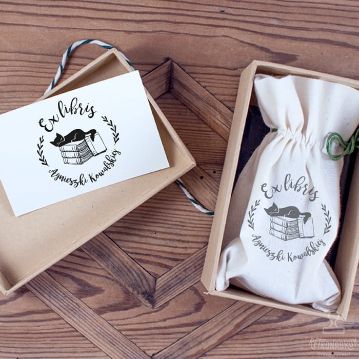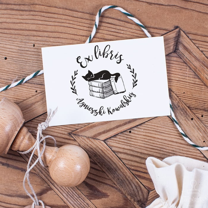 Ex Libris w postaci drewnianej pieczątki retro z motywem kota to doskonały pomysł na prezent dla miłośnika książek i futrzaków.
