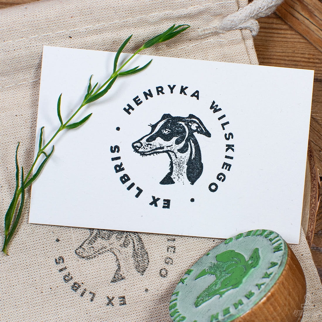 Drewniany stempel Ex Libris z uroczym motywem czworonoga, personalizowany imieniem i nazwiskiem właściciela. Idealny do oznaczania książek w domowej kolekcji lub jako niepowtarzalny prezent dla miłośnika zwierząt. Symbolika psa jako wiernego towarzysza doskonale oddaje ducha każdego czytelnika i strażnika literatury.