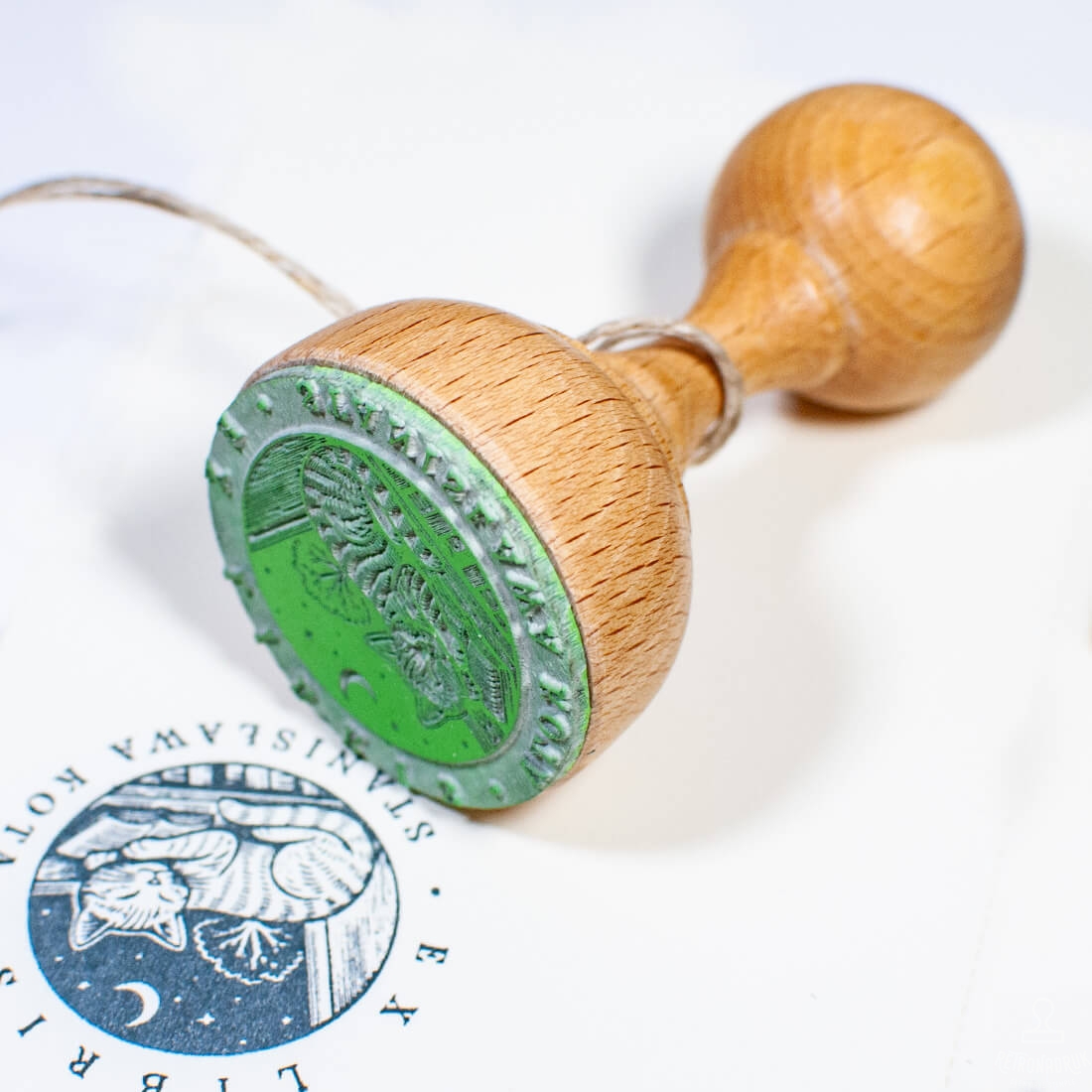 - Personalizowany stempel Ex Libris z motywem kota nocą (średnica 40 mm)